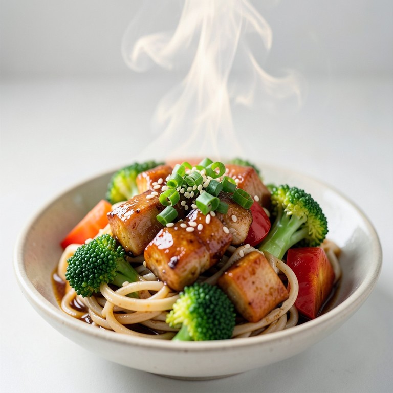 Fideos de Trigo Integral con Pollo Teriyaki y Verduras al Vapor