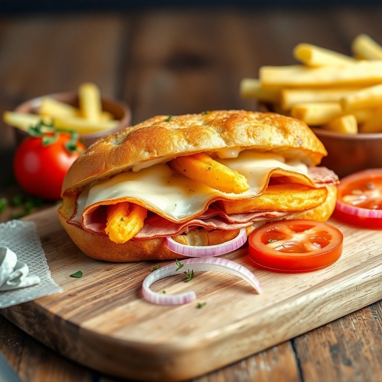 Sanduíche Crocante de Batata Palha com Queijo e Presunto