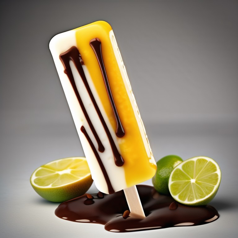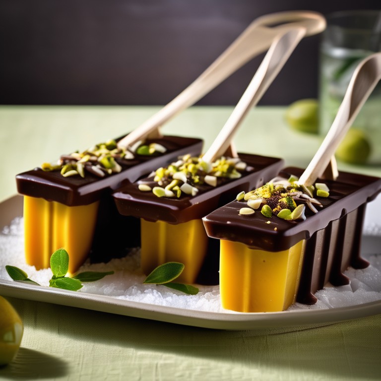 Mango Pistachio Coconut Popsicles with Dark Chocolate Drizzle