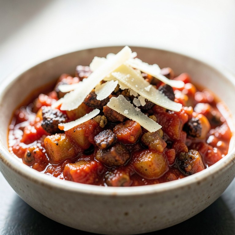 - Coquillettes en Sauce Tomate Corsée et Éclats de Parmesan