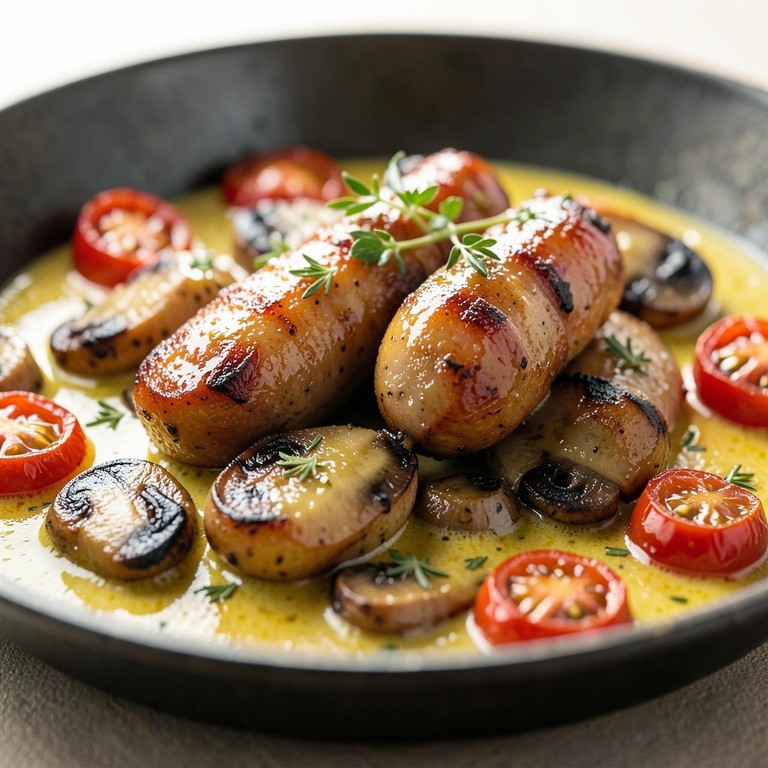 - Poêlée de chipolatas à la crème de moutarde et miel