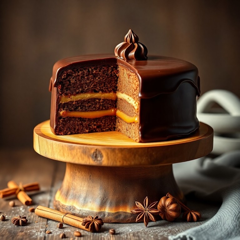 Bolo de Pão de Mel com Recheio de Doce de Leite e Ganache de Chocolate
