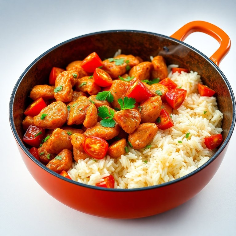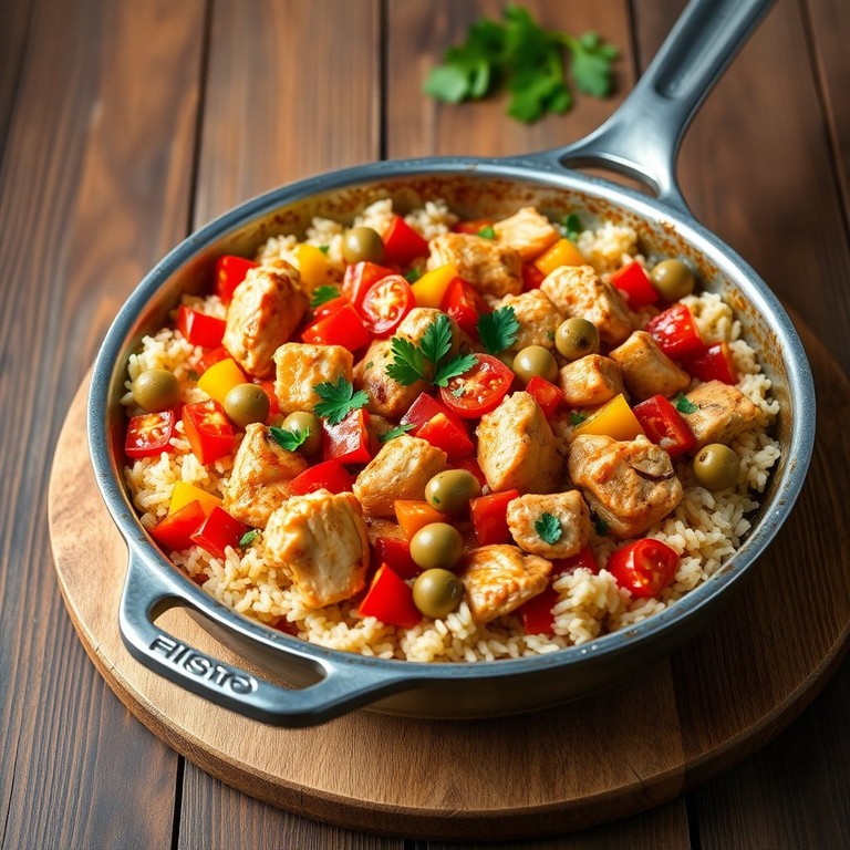 - Mediterraner Hähnchen-Reis-Pfanne mit frischen Tomaten und Kräutern