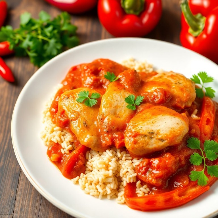 - Mediterranes Hähnchen mit Reis und Tomatensauce