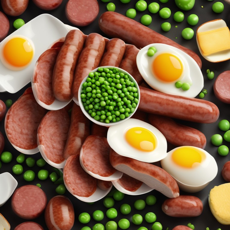 Sausage with Eggs and Peas