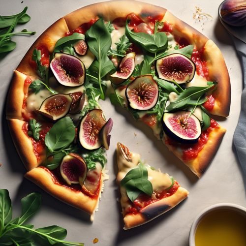 Pizza with Cheese Sauce, Fig, Arugula, and Viburnum Syrup