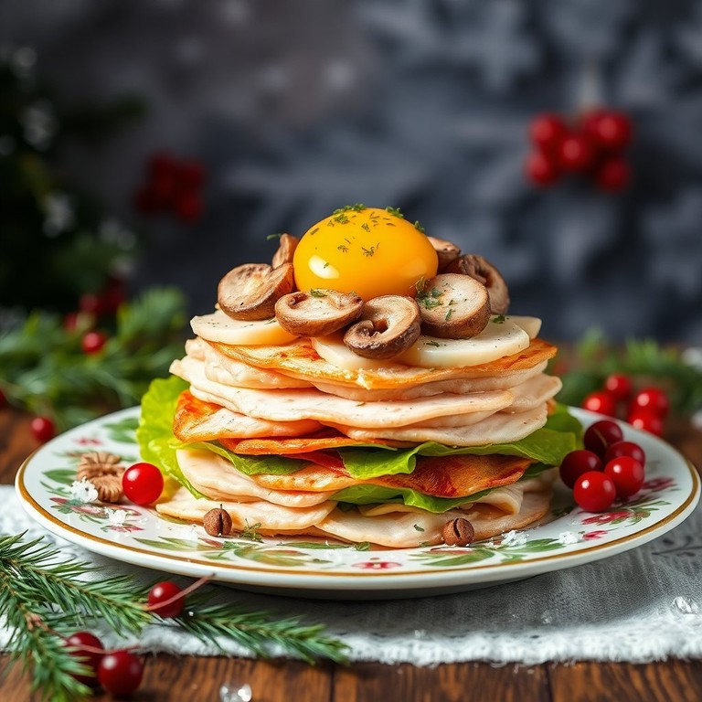 Салат «Зимняя сказка» с курицей, грибами и сыром