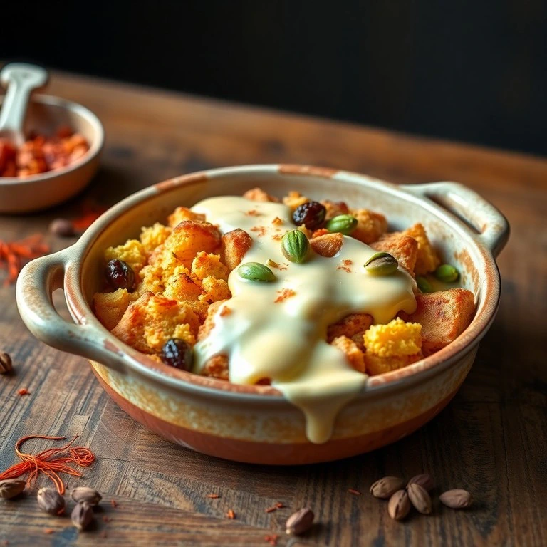 Saffron and Paratha Bread Pudding with Cardamom Custard