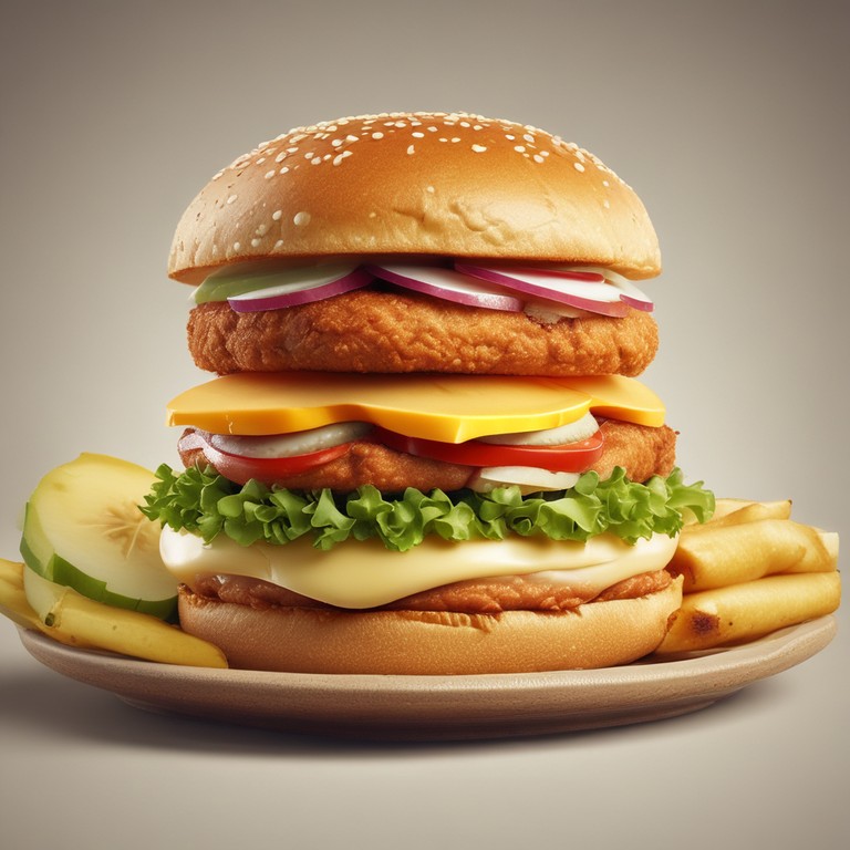 - Burger de Poulet Pané avec Cheddar, Banane, Gombo et Tomate