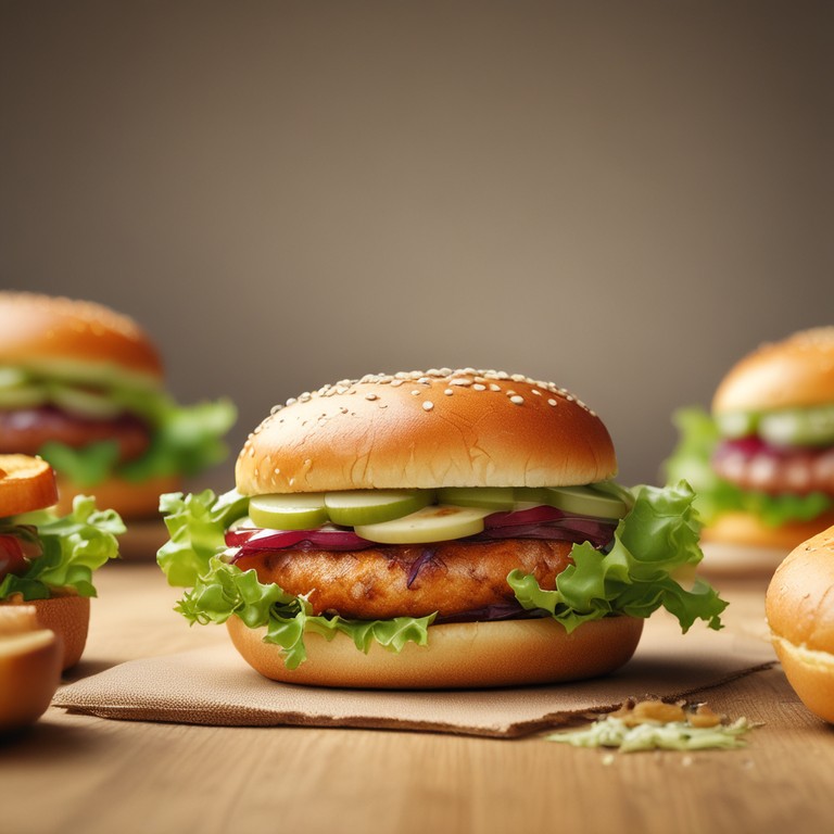 - Burger de Poulet Gourmet avec Cheddar, Laitue, Moutarde à l'Ancienne, Relish et Oignons Caramélisés