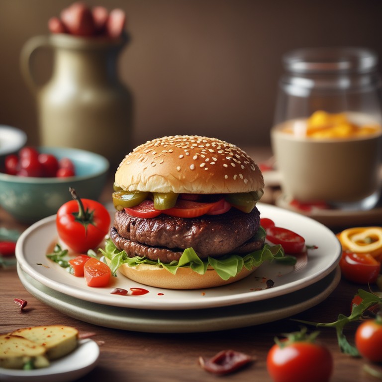 - Burger Steak Haché avec Tomates Cerises, Cheddar, Jalapenos et Relish