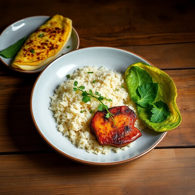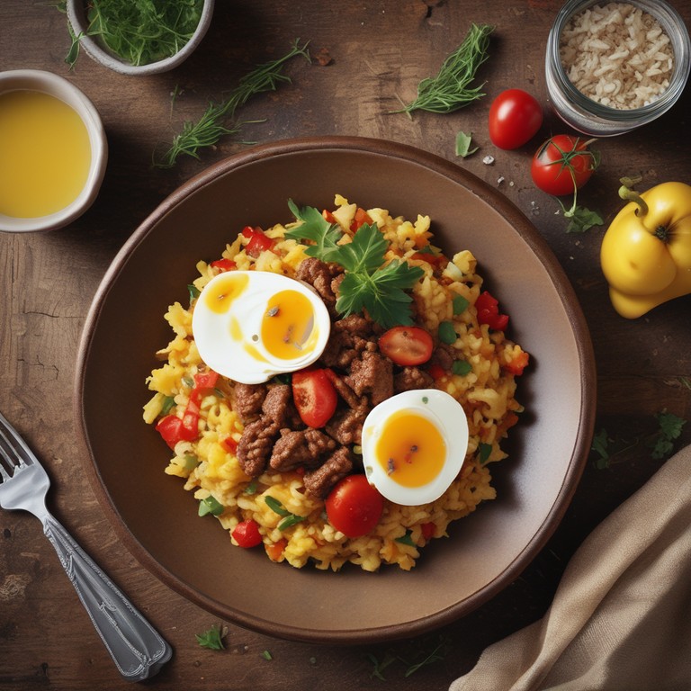 - Riz Sauté aux Œufs et Steak Haché avec Tomates et Poire