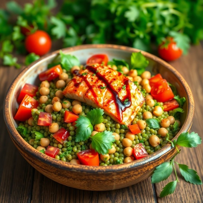 - Salade de Lentilles et Pois Chiches au Saumon Grillé