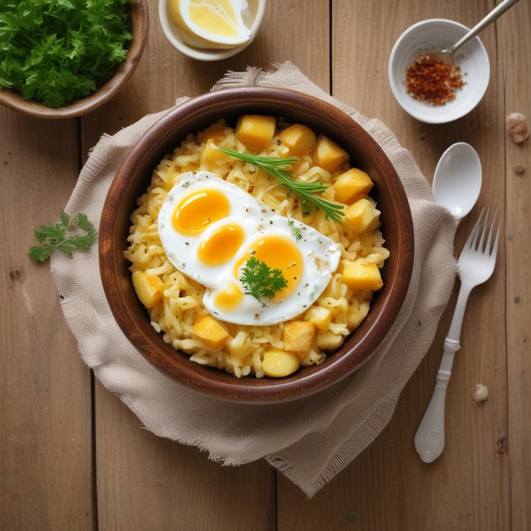 Cheesy Potato and Egg Rice Bowl