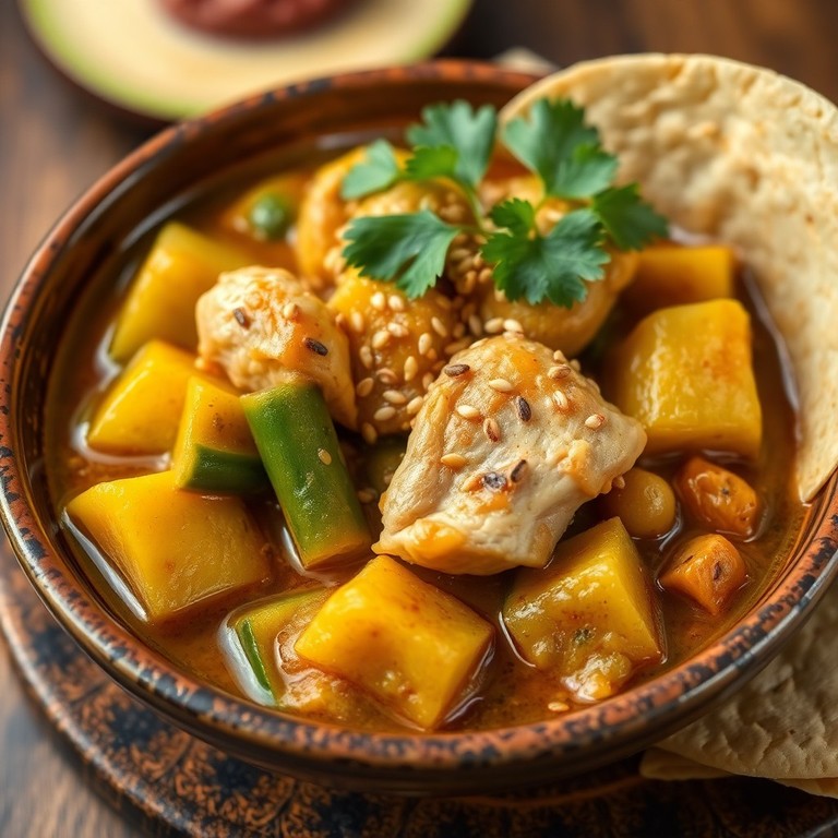 Calabacitas con Pollo en Salsa de Cacahuate y Pepita