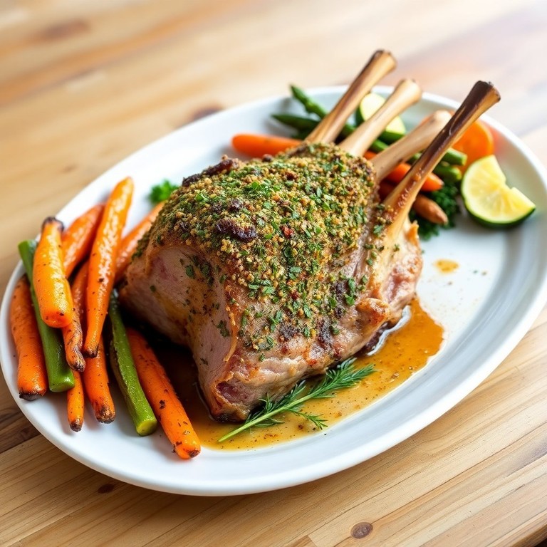 Herb-Crusted Rack of Lamb with Seasonal Vegetables