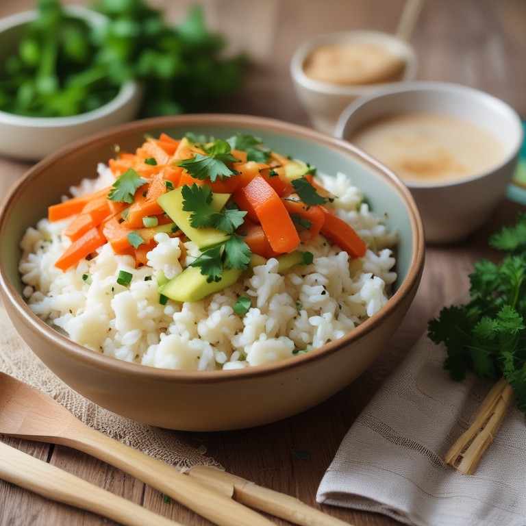 Asian-Inspired Kohlrabi and Zucchini Rice Medley with Creamy Sauce