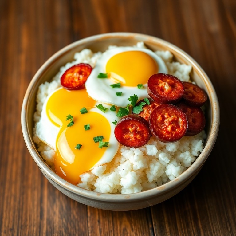 Bowl de arroz con huevo y chorizo a la española