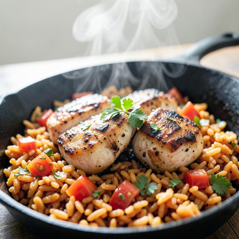 - One-Pan Mediterranean Chicken and Rice with Diced Tomatoes