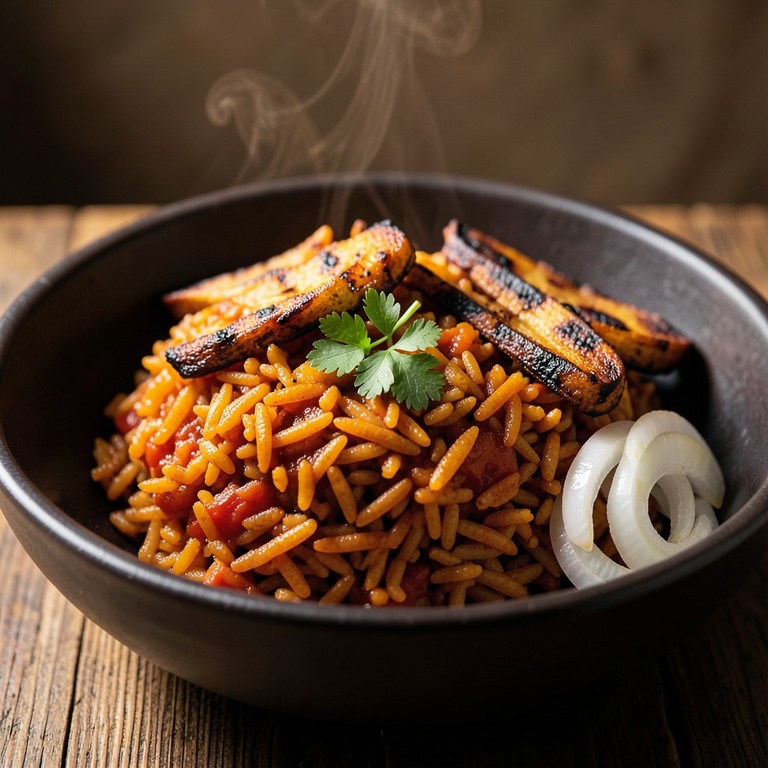 Spicy Nigerian Jollof Rice with Grilled Plantains