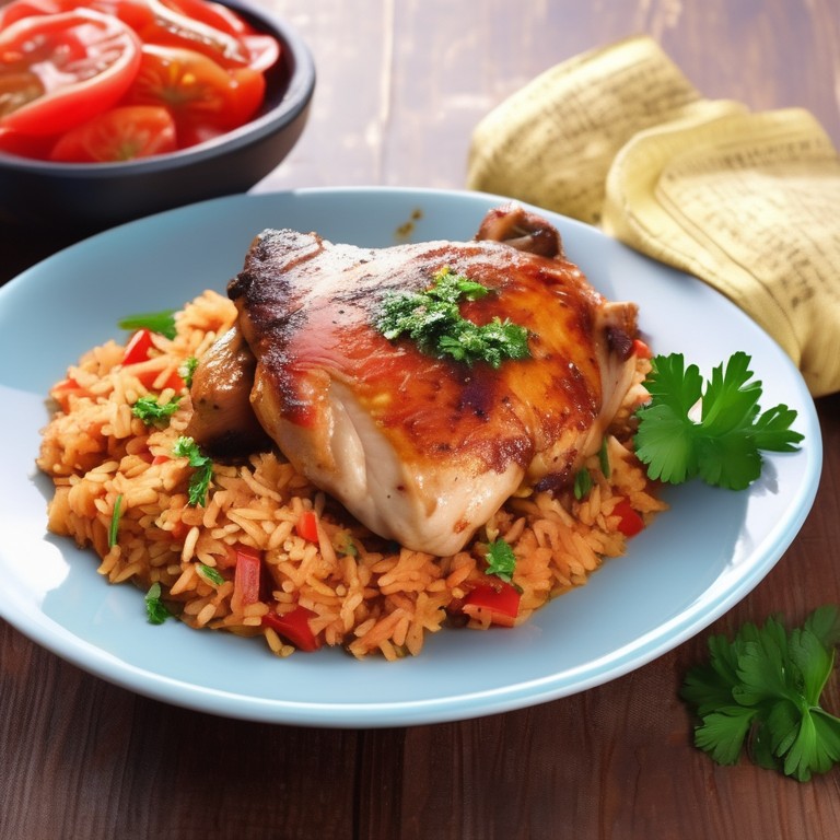 Baked Chicken Thighs with Tomato Rice Pilaf