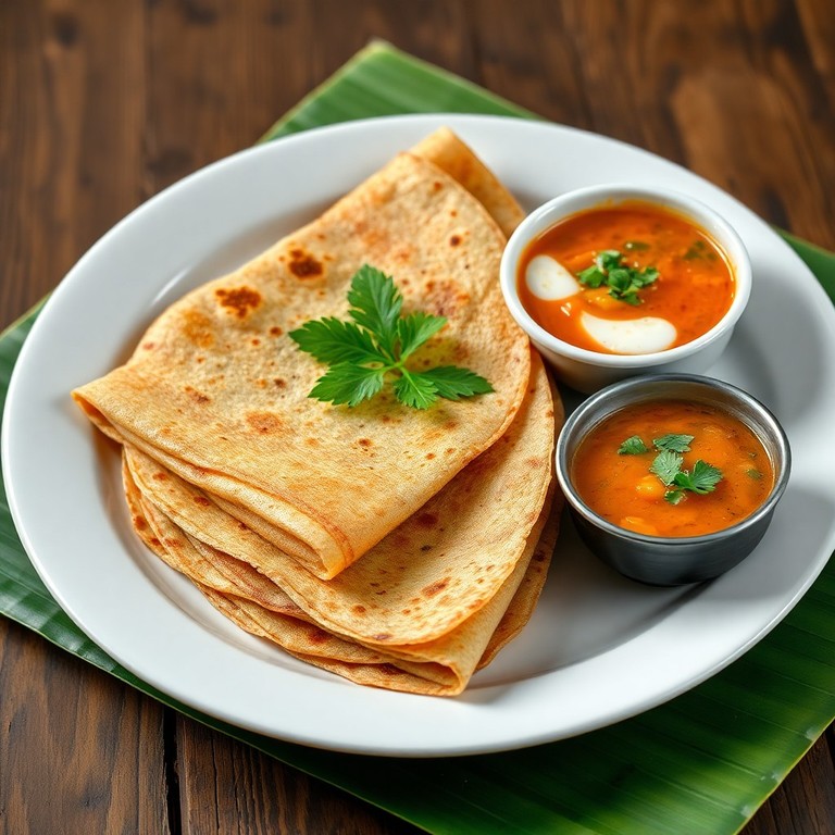 South Indian Dosa with Coconut Chutney and Sambar
