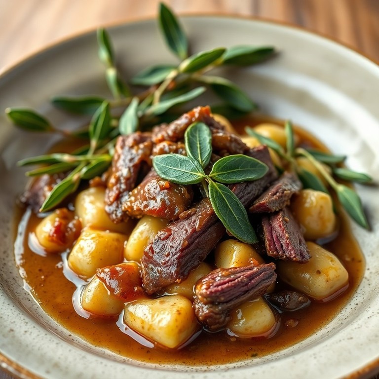 Rustic Sage Butter Gnocchi with Shaved Beef and Beefy Onion Gravy