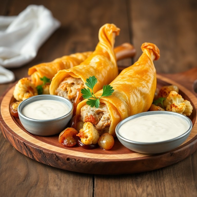 Gefüllte Hähnchenkeulen im Filoteig mit Blumenkohl-Zwiebel-Füllung