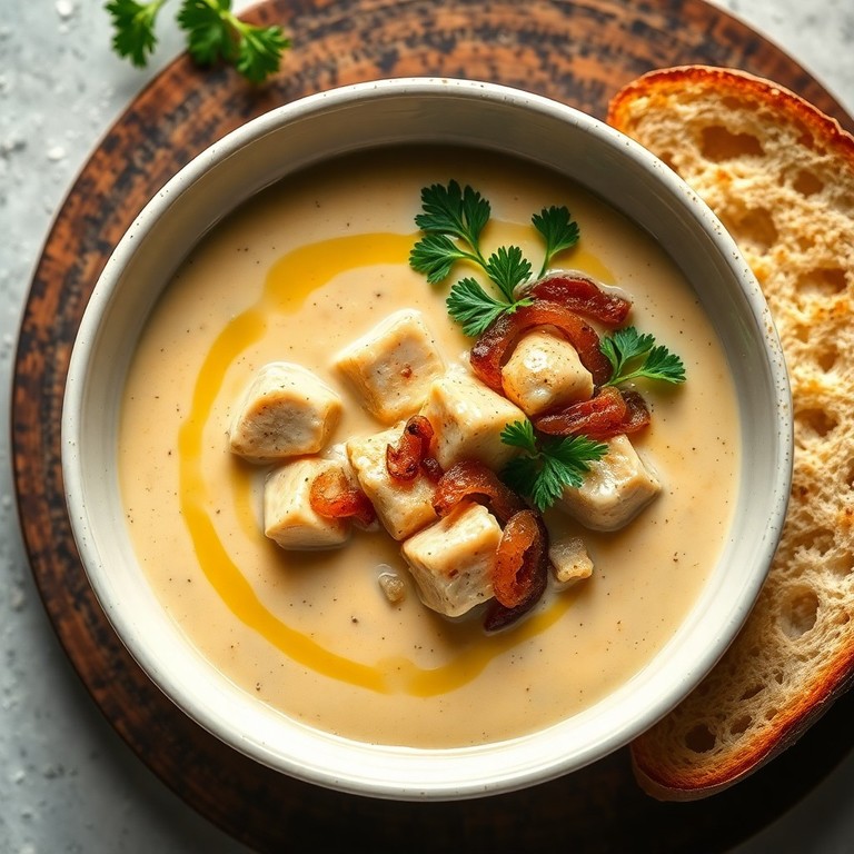 Blumenkohl-Hähnchen-Suppe mit karamellisierten Zwiebeln