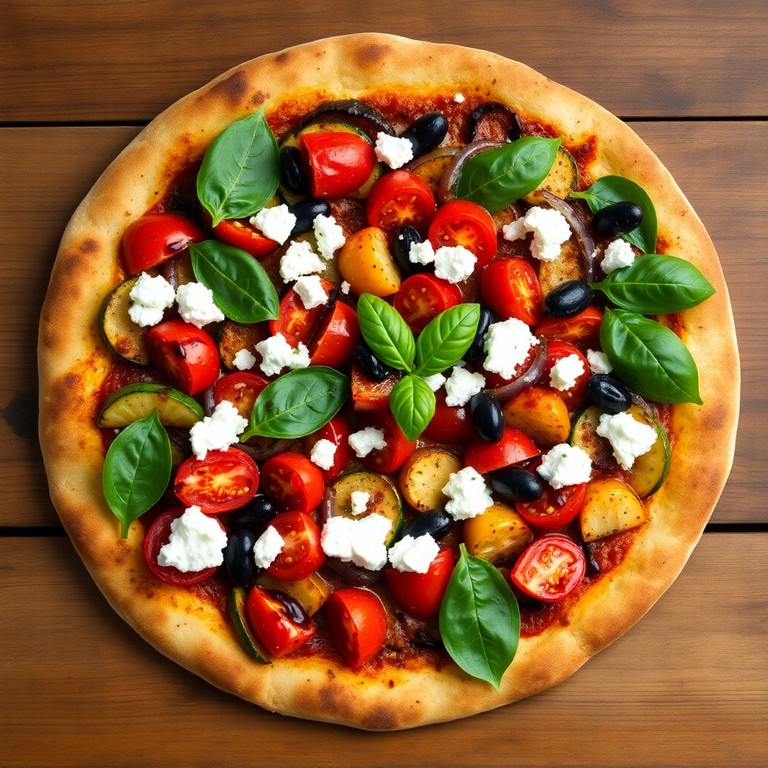 Mediterranean Veggie Pizza with Roasted Vegetables and Tangy Goat Cheese
