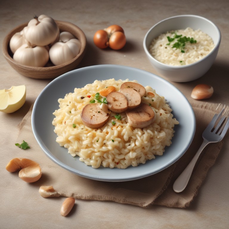 Arroz con Calabresa y Macarrón en Salsa de Cebolla y Ajo