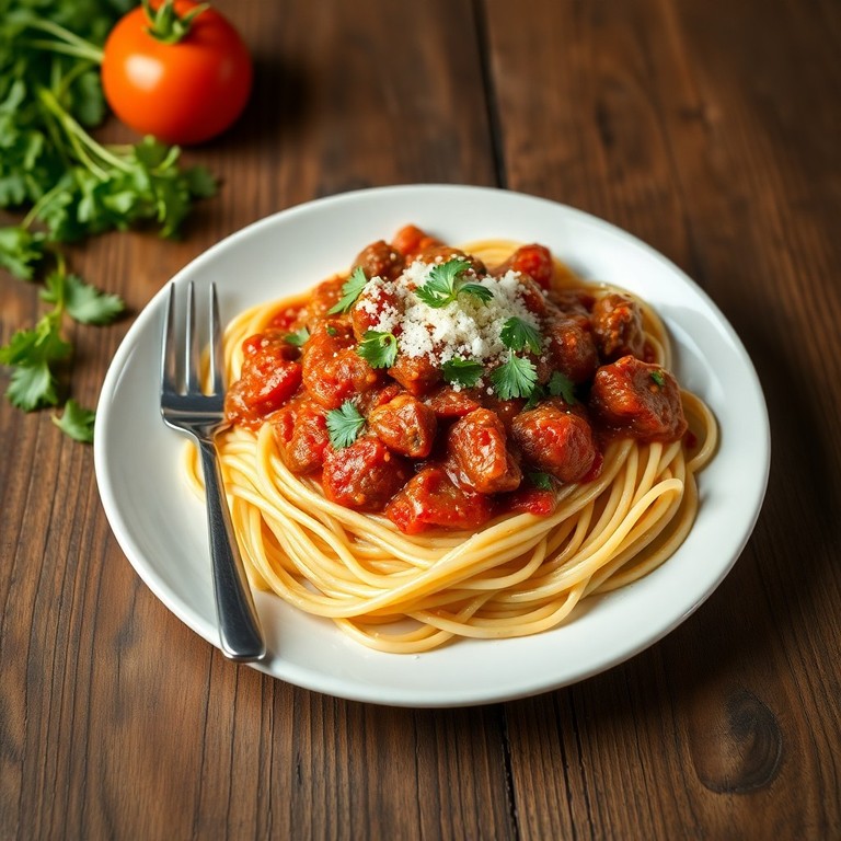 Espaguete ao Molho de Tomate e Coentro com Carne