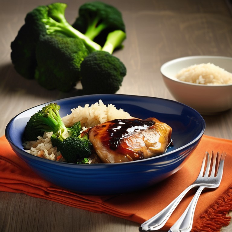 Balsamic Glazed Chicken with Steamed Broccoli and Carrot Rice