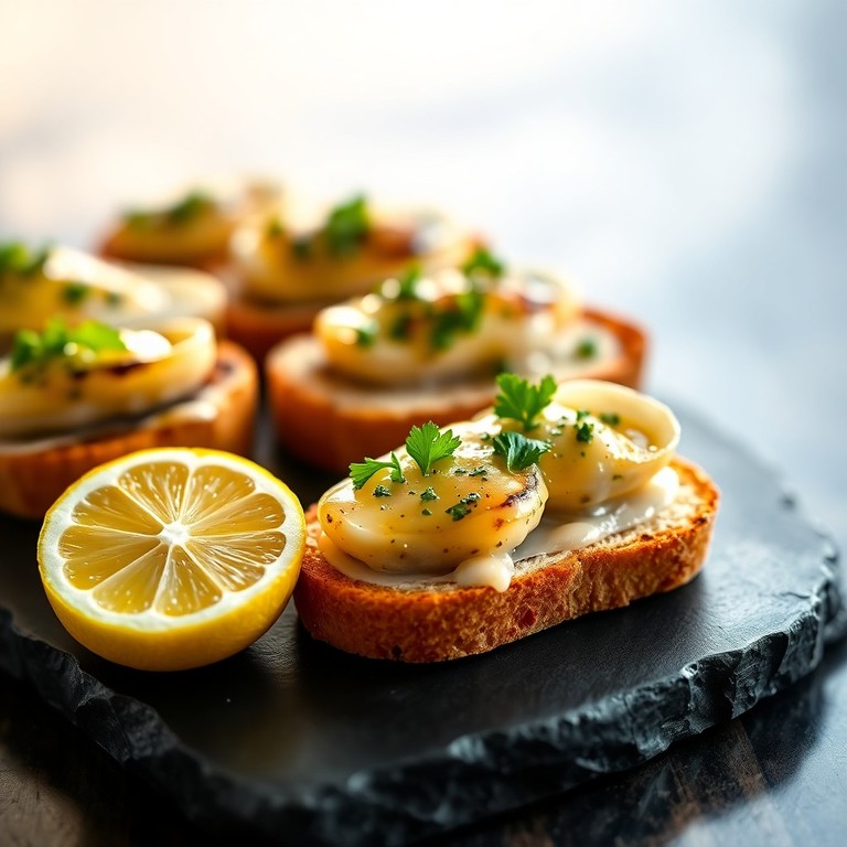 Garlicky Broiled Oyster Crostini