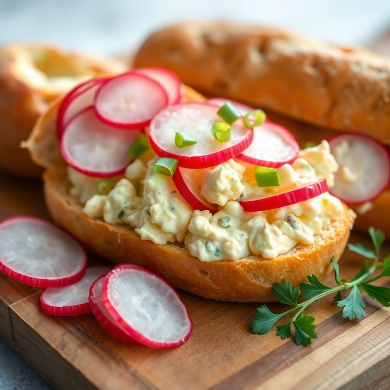 Багет с яичным салатом и редисом
