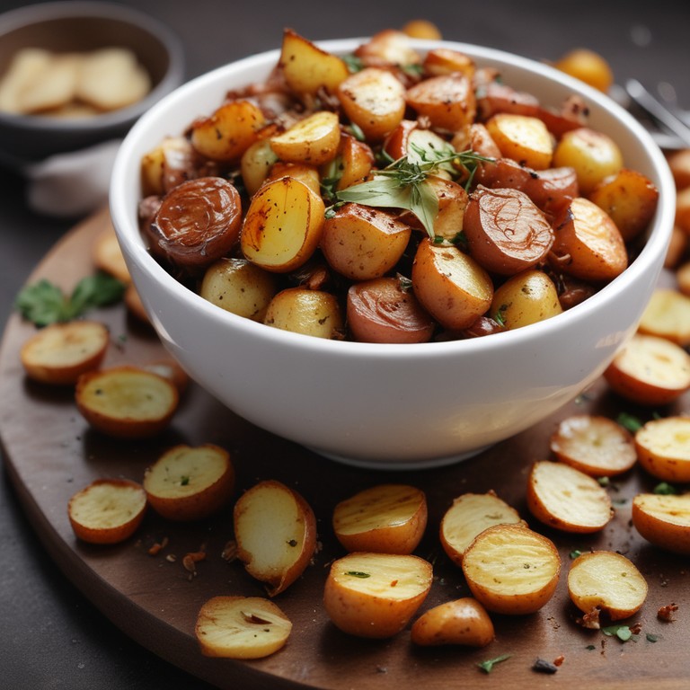 Crispy Garlic Roasted Potatoes with Caramelized Onions