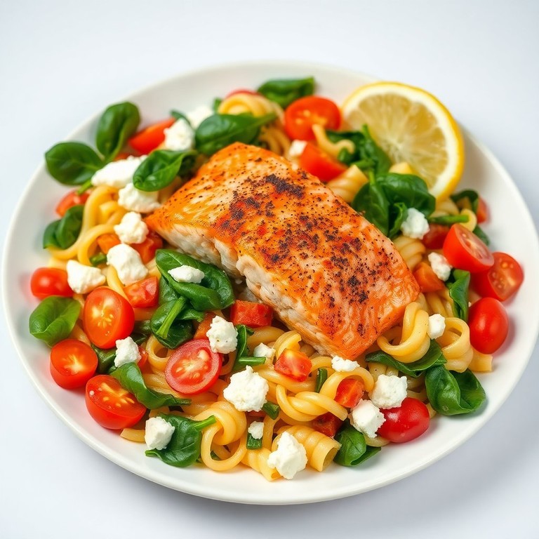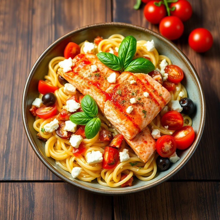 Mediterranean Salmon Pasta Bowl with Feta and Olives