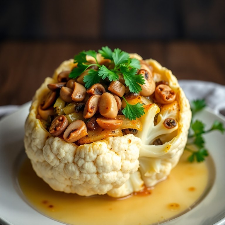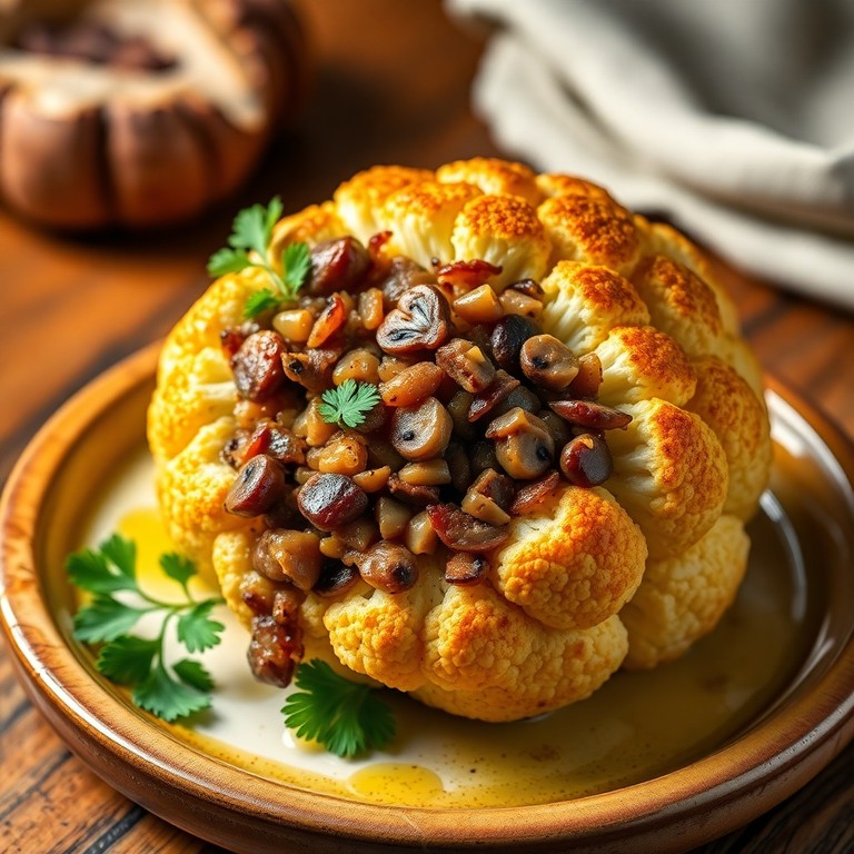 - Champignon und Zwiebel gefüllter Blumenkohl