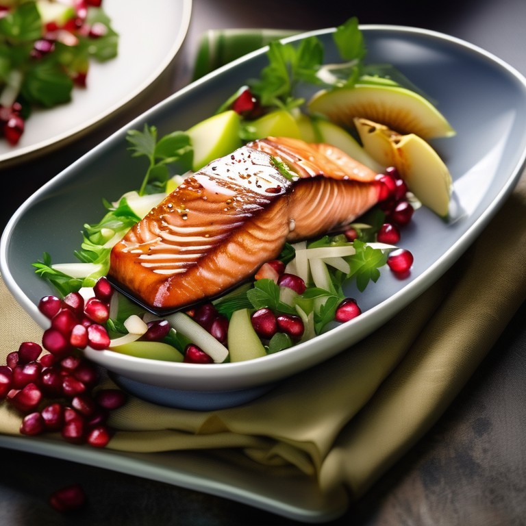 Miso Glazed Salmon with Apple and Pomegranate Salad