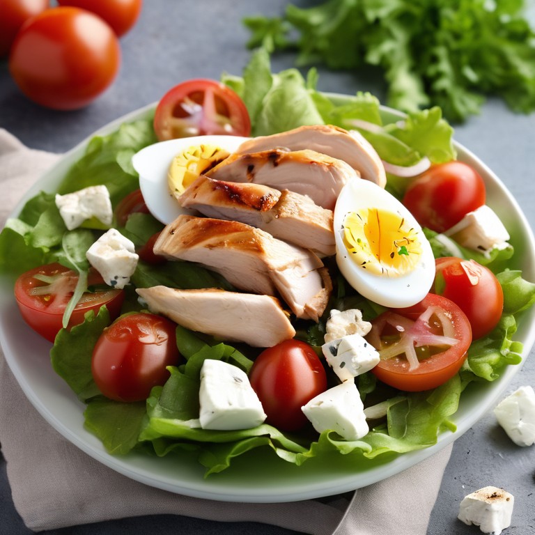 Salade de Poulet avec Tomates, Oignons, Féta et Œufs