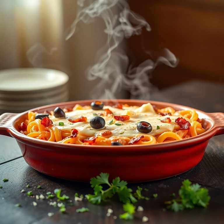 Mediterranean Wholemeal Pasta Bake with Bacon and Feta