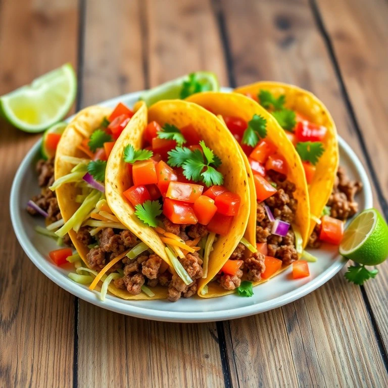 - Tacos de Carne Moída com Queijo Cheddar Derretido e Legumes Frescos