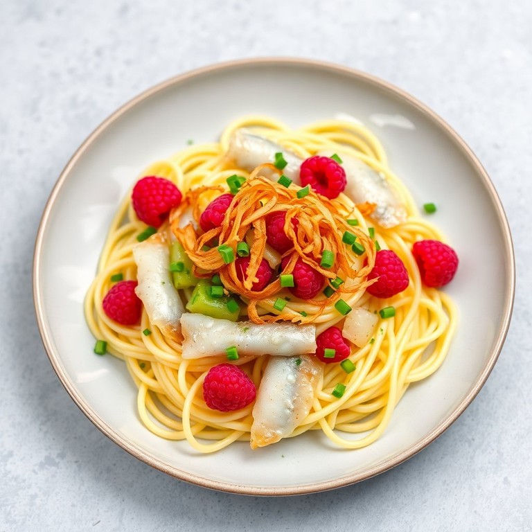 Pasta with Crispy Onions and Raspberry-Herring Sauce