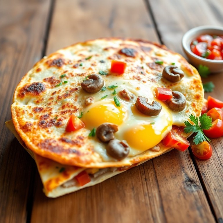 Cheesy Egg and Mushroom Breakfast Quesadilla