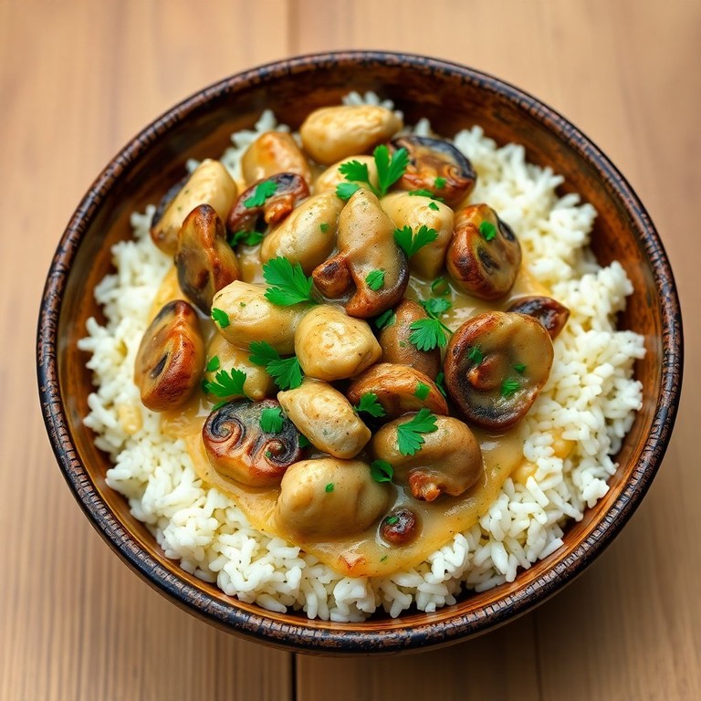 Creamy Garlic Mushroom Chicken Rice