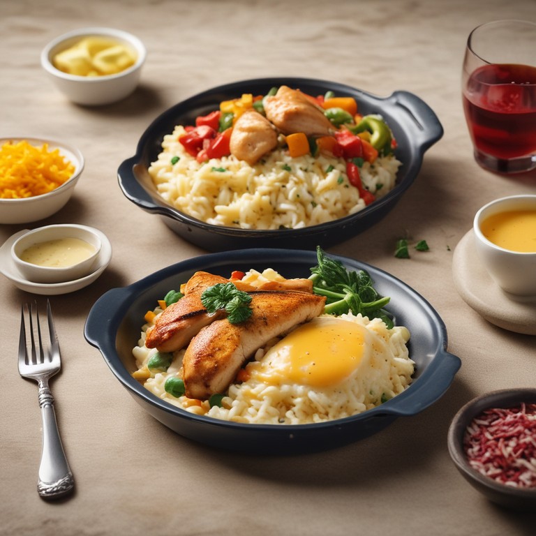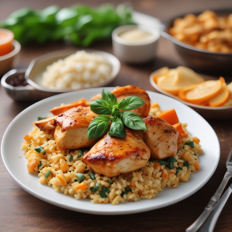 Joyful Cheesy Basil Chicken with Rainbow Rice and Sweet Potato Medley