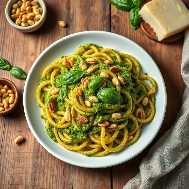 Pasta Sabollarda al Pesto de Albahaca y Piñones
