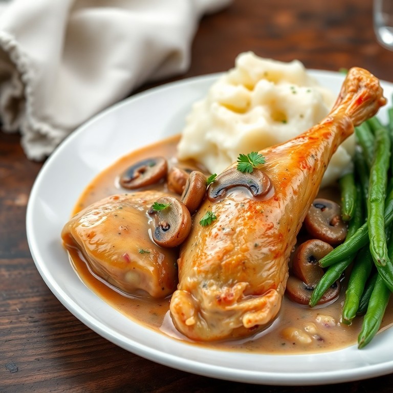 Pata y Muslo en Salsa de Champiñones a la Crema