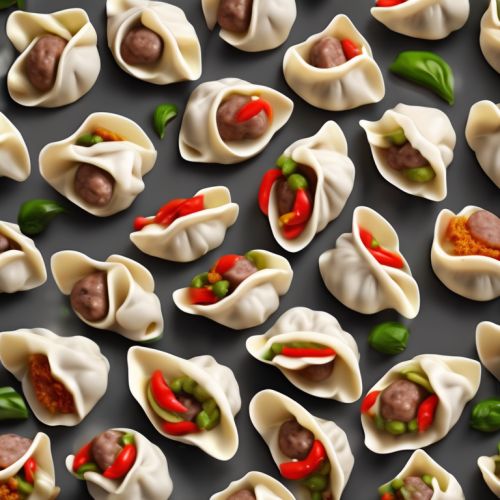 Pelmeni with Sausage, Chili Peppers, Pickles, and Cheese