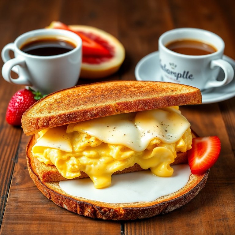 Fluffy Egg and Cheese Breakfast Sandwich on Toasted Milk Bread